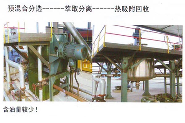 此類油泥處理工藝根據(jù)含油量多少,我公司主要采用以下兩種工藝:一是預(yù)混合分選—萃取分離—熱吸附回收—生物修復(fù);二是熱解析回收資源化。
